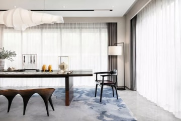 “生活的诗意万象浮现于点滴日常,艺术的美感亦通过细节延展出诗意的具象。本案设定为一个艺术家之家,家的外在簇拥着一城繁华,我们的设计在于营造家的艺术与诗意内核,整体定位为书画服装创作工作室风格,呼应居者的身份,匹配对应的生活方式想象,让生活与艺术不期而遇,为居者的艺术生活增添意趣与情致。”设计师怀揣对生活的感知力确定了设计的主题。