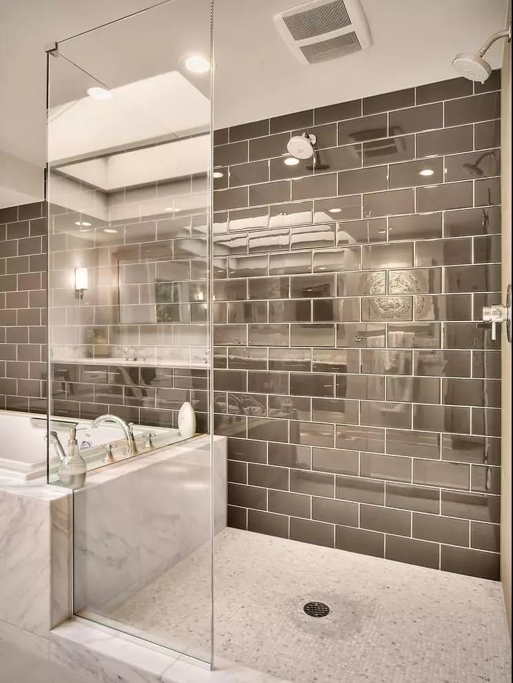 玻璃隔断材质能很好的保持卫生间的采光效果,缓解整个空间的压抑感。一般搭配挡水条使用,长条形的卫生间十分适用。