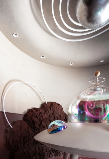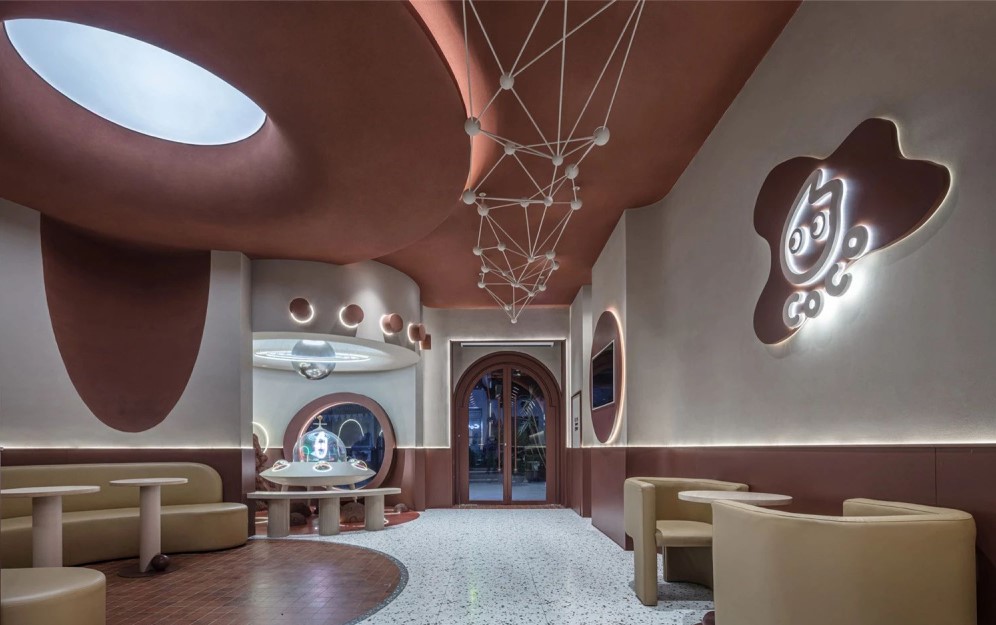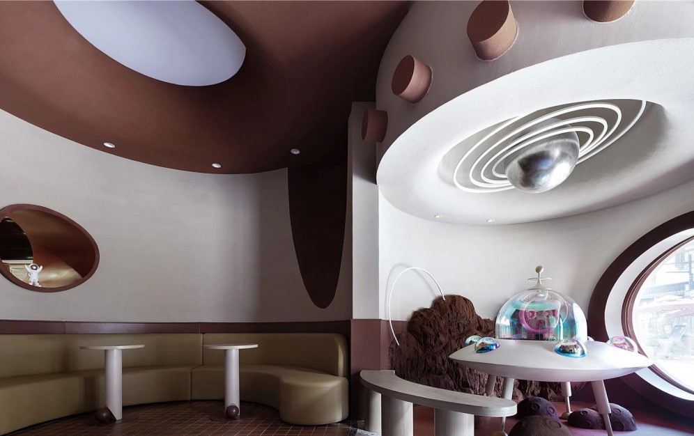 作为人们熟悉的品牌,这一次的CoCo却又带了一丝神秘的气息。一直想要追求新突破的设计师,这一次,从初进门的第一步,就为CoCo宇宙增添神秘之感。隔着曲面的玻璃窗,CoCo号飞船着陆于陨石林立的焦糖星球,似乎是在等待勇敢的探索者,随时整装待发。