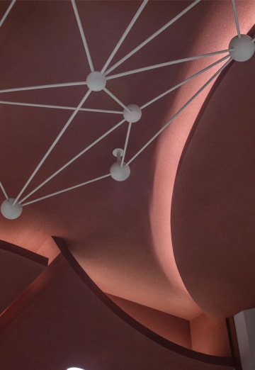 聪明的探索者,或许已经发现了设计师的“小心机”:光线。光线注定是这场星际旅途中不可或缺的灵魂:飞船的镭射光斑,让人眼前一亮;立体行星的光芒,则为宇宙的迷境增添了神秘感。光影摇曳之间,远处的白衣宇航员,破除了墙面单调沉闷之感,同时,也向一路走来却一直坚持探索的勇敢者致敬。