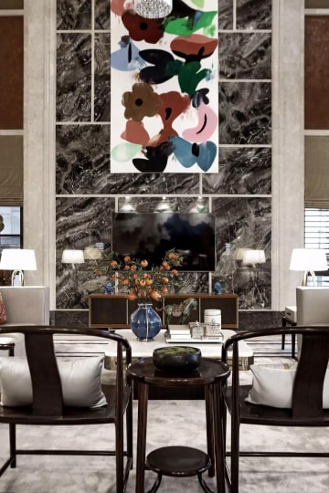风华是一种永恒魅力,大理石的坚毅、曼纱的风华、红木散发的诗意气息,呈现出不同以往的华贵古典。一抹蓝色融入其中,尤显豁达沉稳,这些都是设计中永恒的魅力存在,代表着高品质的贵族底蕴。