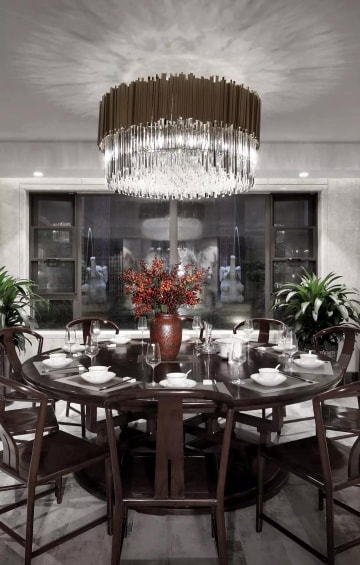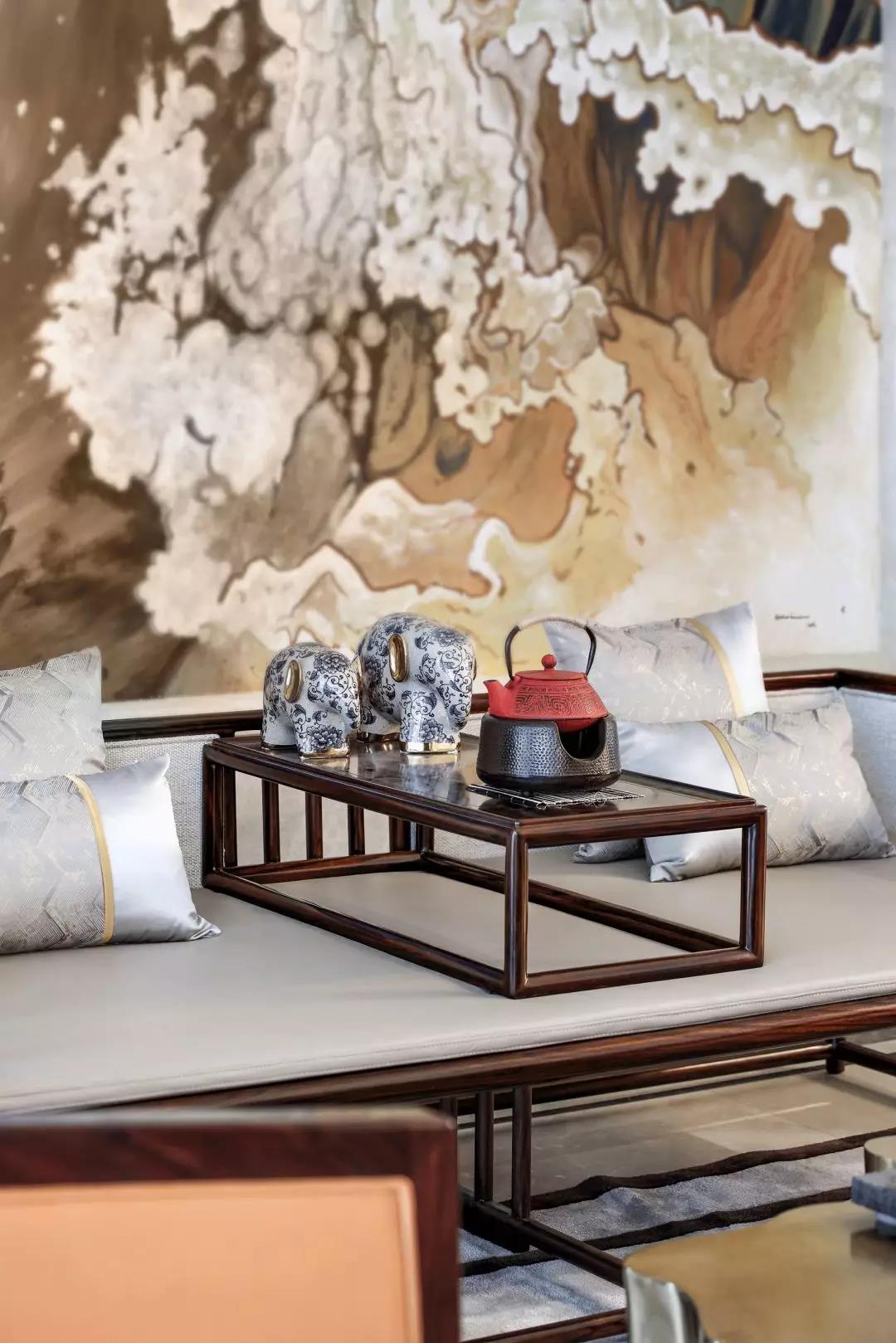 现代中式座椅与红木餐桌凳椅游艇主题的设计手法上,延续了文明的气韵,这是当代艺术风格与传统文化元素,共同交织成的一幅阖家相聚的幸福之处。