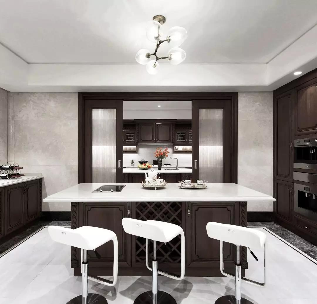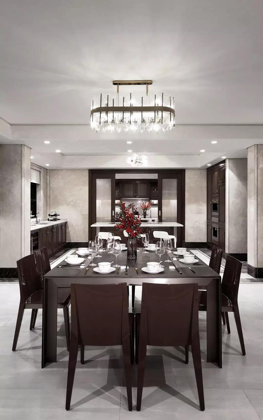 西式厨房和中式厨房,“四位一体”的空间设计,让视野瞬间开阔,在兼具奢意美学的同时,始终一以贯之中式元素,呈现出不同以往的清雅、古典的一面,同时也表达着一种不拘世俗、沉稳内敛的人生格局。
