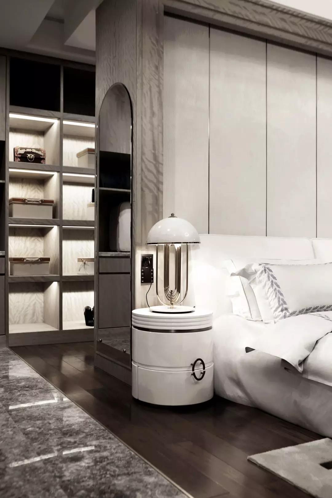 主人房的设计诠释了“江山本似画,内美静中参”的意境,在游艇度假风的氛围里,宽敞舒适的视野环境里,可以将窗外与室内景色皆收眼底,尽享生活的惬意安和、华贵奢美。
