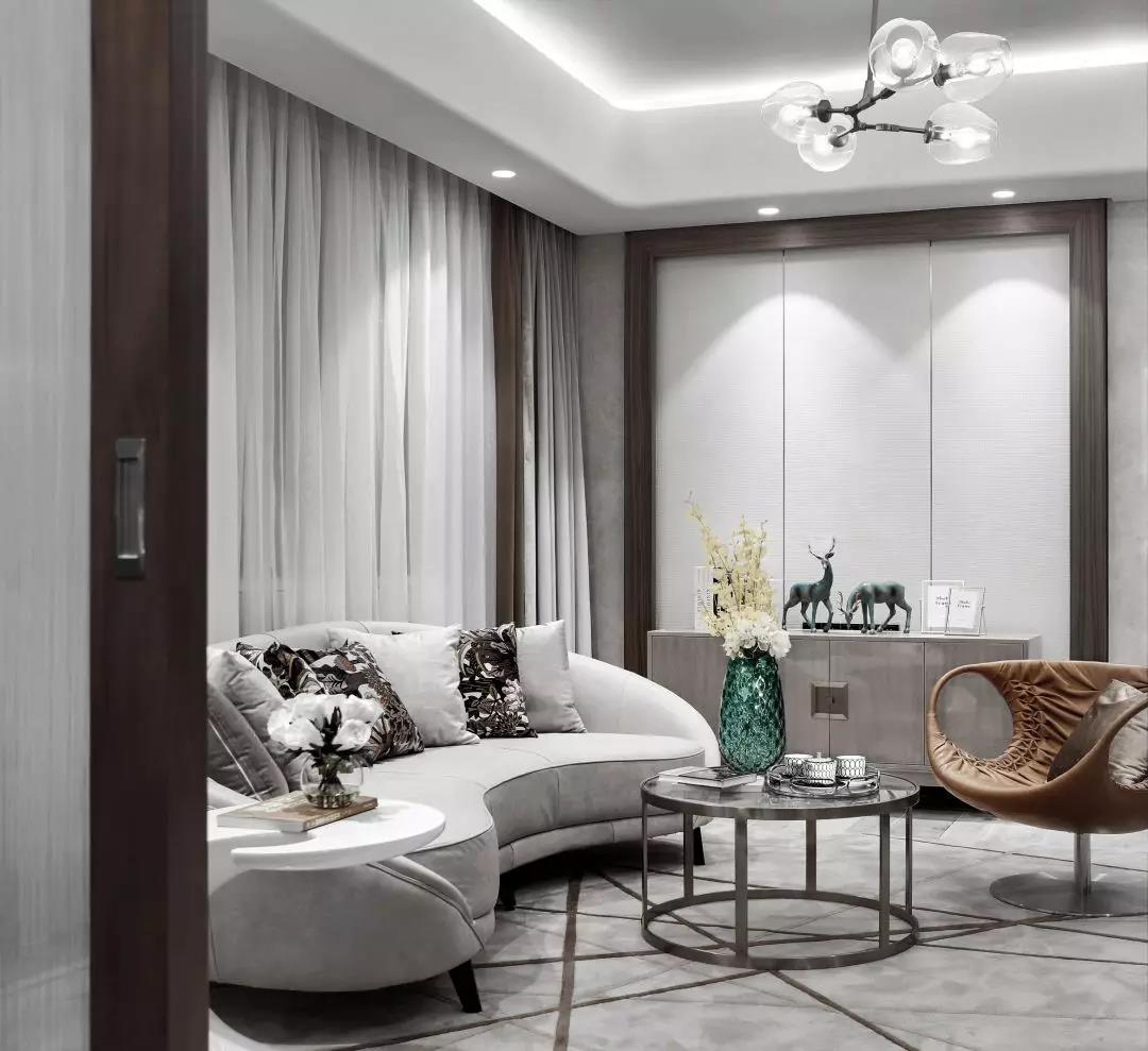 悠然步入中空挑高的客厅,色调的碰撞,线条的交错,不同的材质组成一幅令人眼前一亮的画面,层次设计更是参照了游艇布局,所布置的家具呈现出的轻盈弧度,也摒弃传统古板,打破沉闷严肃,糅合进时尚与独特。