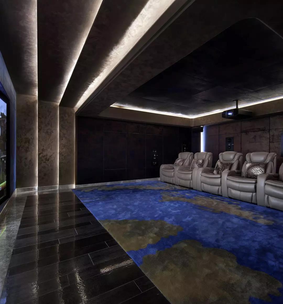 家庭影视厅注重视觉氛围的营造,就天然纹理的墙壁设计,槽灯以及配色手法上而言,几乎所有的元素都来自于海洋游艇文化,有一种碧海蓝天的感觉。当屏幕切换不同光调,也会如同极夜中灵动多姿的流光,时时刻刻都在变化,给人身临其境的观映体验。