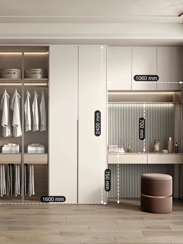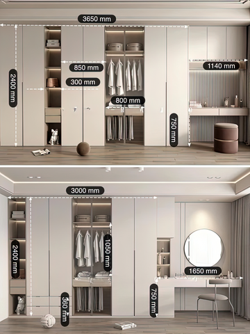 🌟规划空间超重要!打造专属衣帽间,是精致生活的优雅启幕。测量好房间尺寸,根据衣物数量和类型划分区域,挂衣区👚、叠放区📦、抽屉区🗄等,每一寸空间,都精心规划,让衣物、鞋帽各得其所,告别杂乱无章。采用高品质材质,融合现代设计美学,不仅收纳有序,更添居家品味。