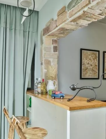 如果不想要那么麻烦,也可以设计一款简约型吧台,直接利用吧台做分割,让整个空间看起来既有连贯性,又强调了分区效果,简约实用还耐看;