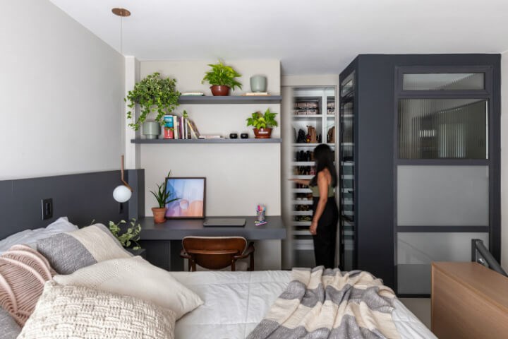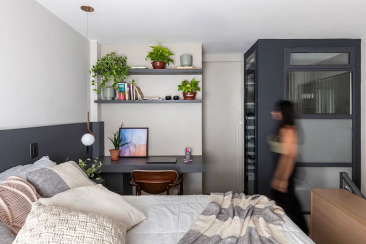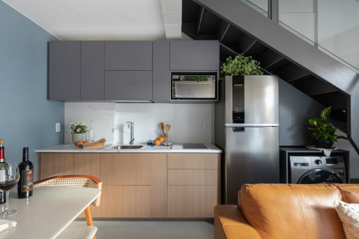 Apê Simpatia 公寓雖然小且緊湊,但仍有足夠的空間,容納溫暖和歡笑。這間美麗的公寓位於巴西的巴西利亞中心地帶,僅 450 平方英尺(約 13 坪)。歸功於巧妙的空間設計,迷你宅顯得綽綽有餘,每件家具都完美融入每個角落,沒有浪費小坪數的任何空間。公寓的屋主是一對年輕、好客的夫妻,他們喜歡烹飪並邀請朋友來家中聚會。因此,他們要求 Lez Arquiteitura 設計公司能充分利用自己的空間,並重新思考公寓的空間配置,使其適合所有家具並發揮坪效,解決小宅容易感到的凌亂及幽閉感受。