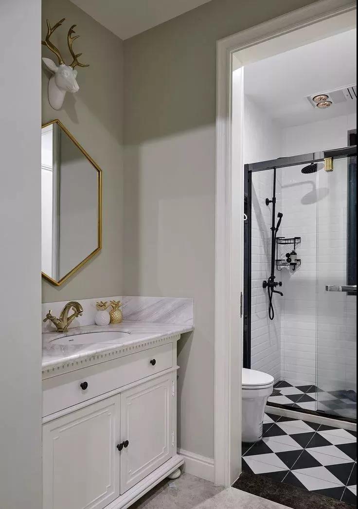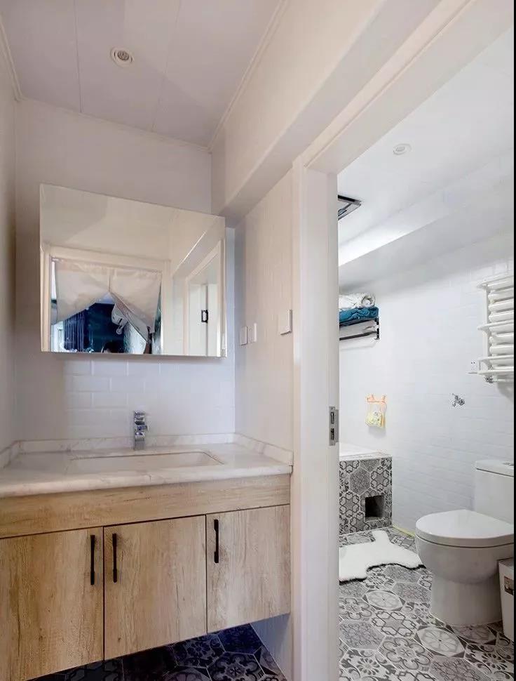 所以如果你家卫生间不是特别大,就不要想着把什么都塞进去了,浴缸拿掉,洗衣机拎出来,台盆独立出卫生间之外,你会发现小小的卫生间用起来还挺宽敞。