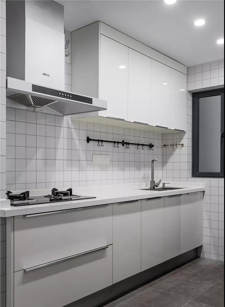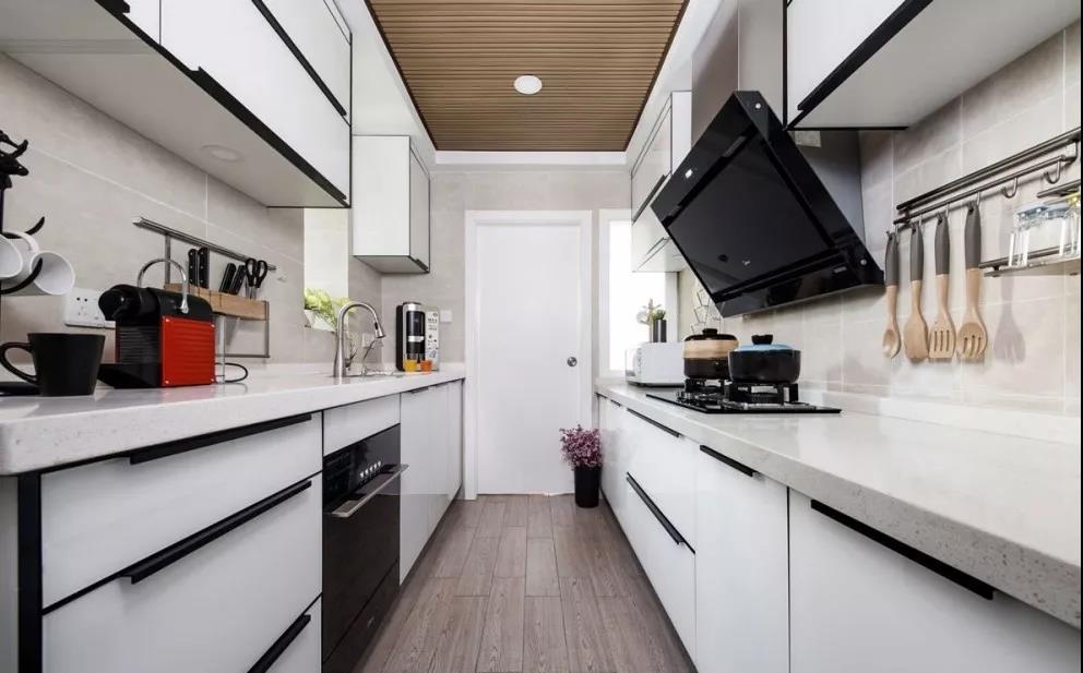 吊柜高度决定了取放物品的便捷性。吊柜低一些,当然方便取放东西,但同时压缩了操作台上空的空间,并且在视觉上会显得压抑,让厨房更显狭小。