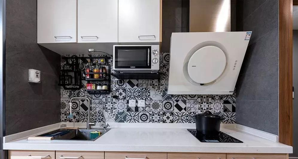 如果厨房面积很小,不建议买顶吸式的油烟机,上面凸出来一块会显得空间更拥挤,对于高个子来说还容易碰到头,侧吸相对好一些。