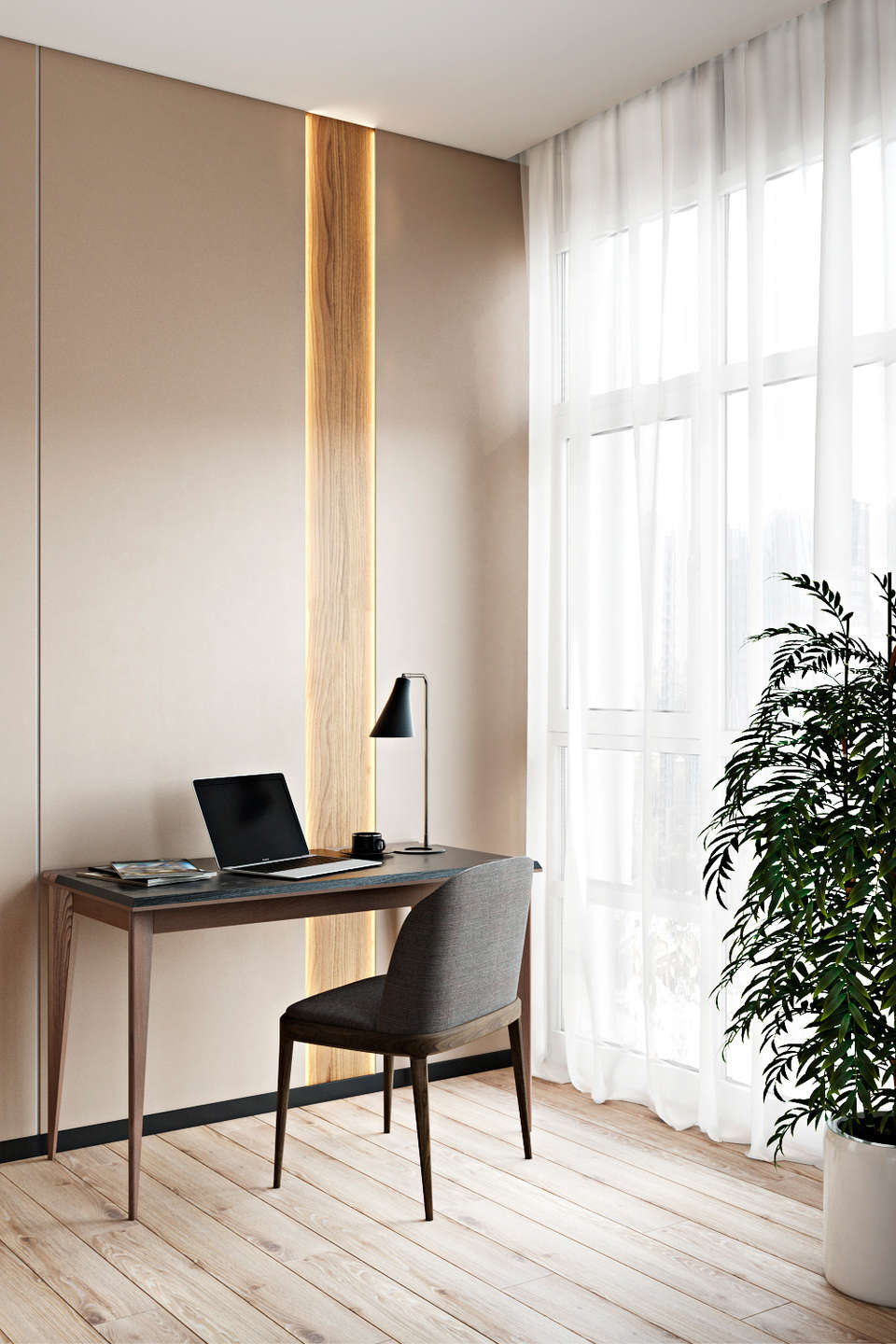 随处可见的大株绿植和简单抽象挂画,轻松给予居家点缀。简洁中透露出高级感。