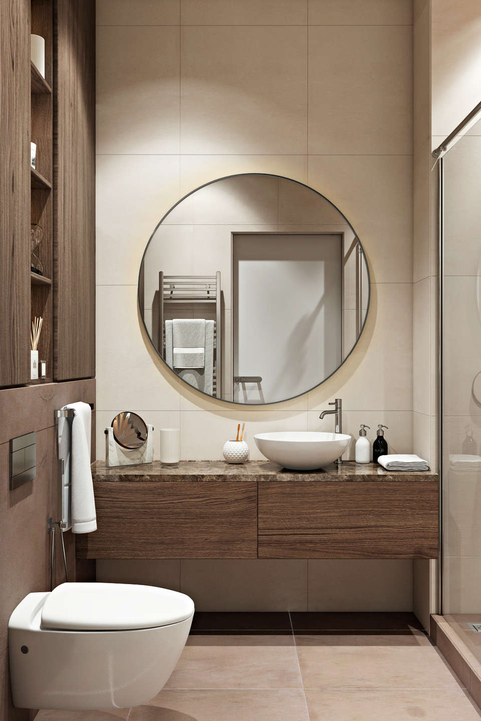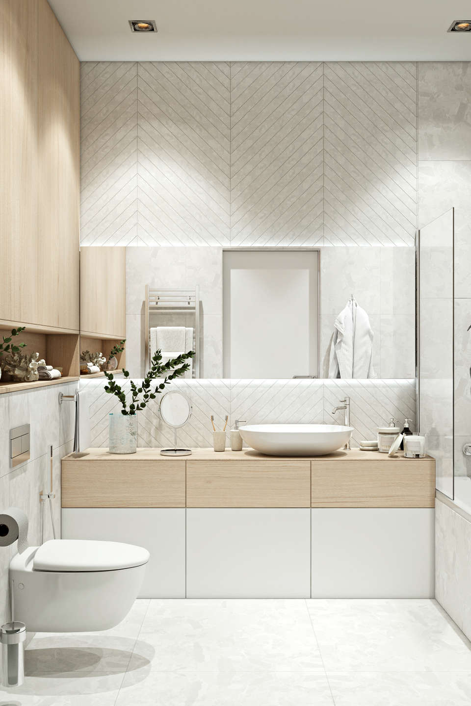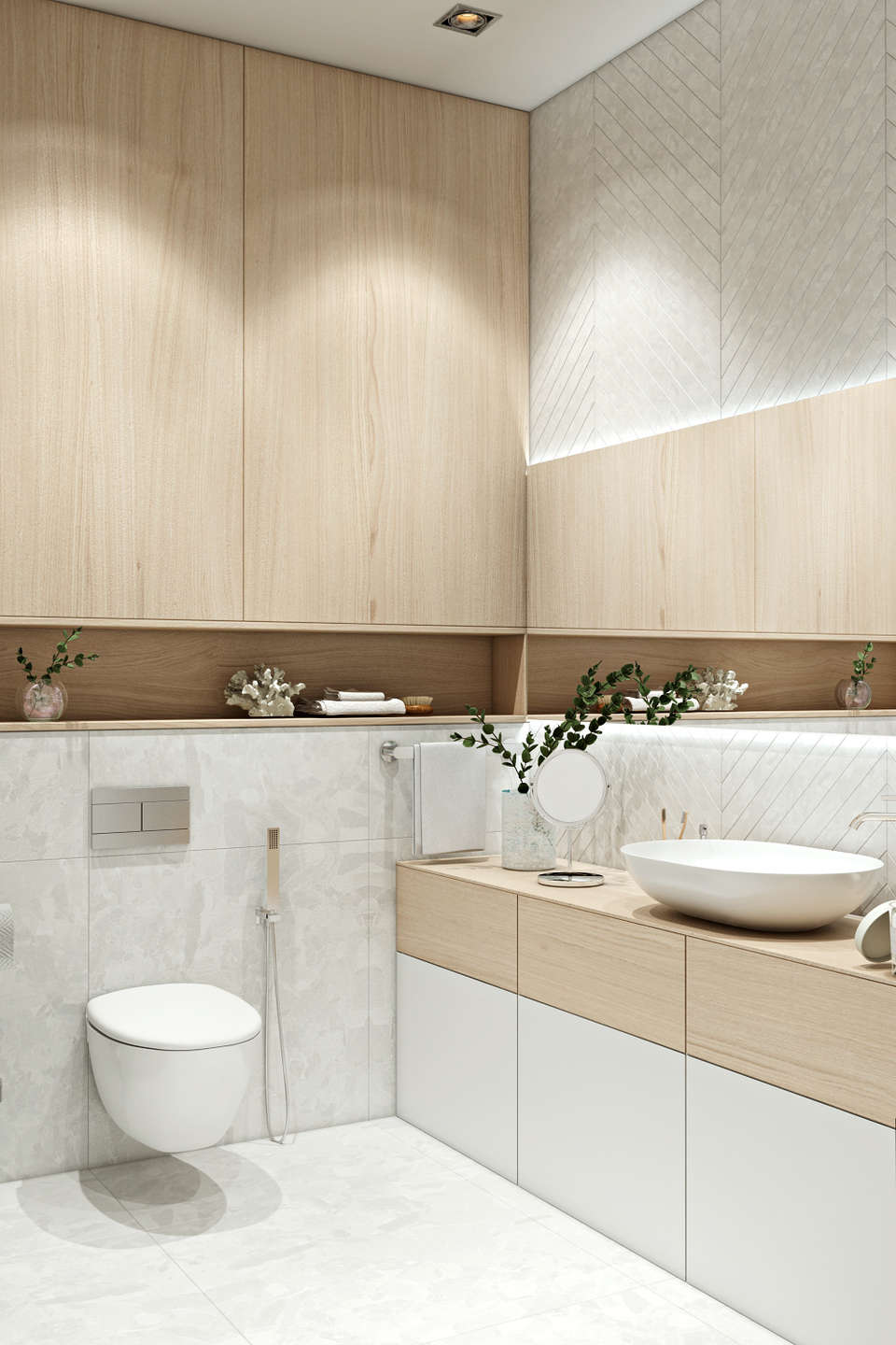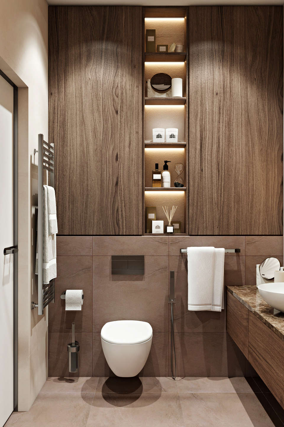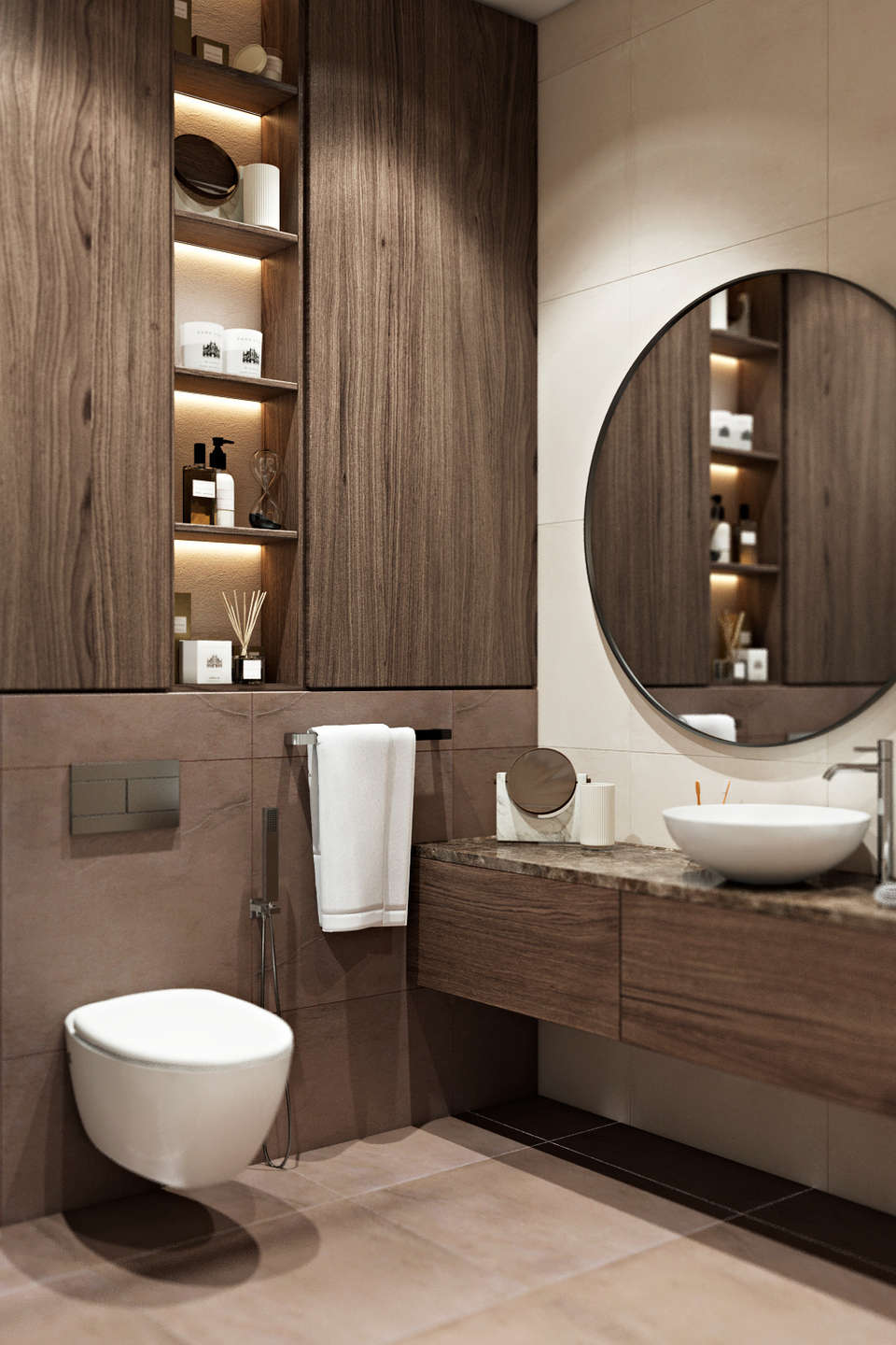 卫生间的设计则沿用了客厅主卧等空间的主体风格。黑白灰依然是主调,扩容镜、悬浮马桶,和壁龛收纳的大量使用,让卫生间秩序井然,感觉丝毫没有卫生死角呢。