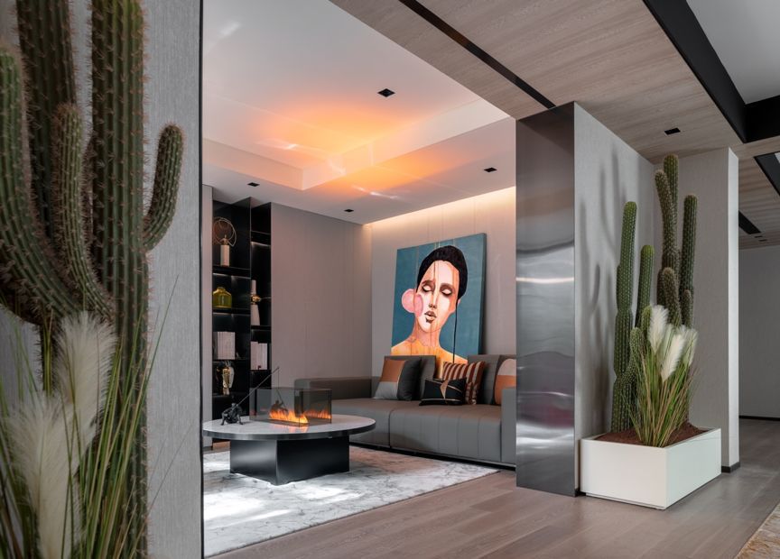 不规则的家具和摄影艺术主题于此巧妙邂逅,在比例、情绪和故事间平衡出自由生动的韵味,处处贯穿理性与简约。