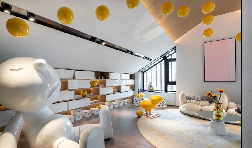 儿童玩乐室分为乐器区、游戏区、学习区、绘画区、城堡攀爬区等多个区域。温和的乳白与明黄恰对应着孩童认知世界中的天真与活泼。