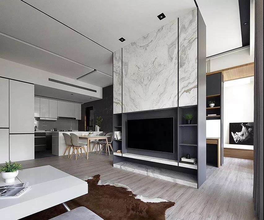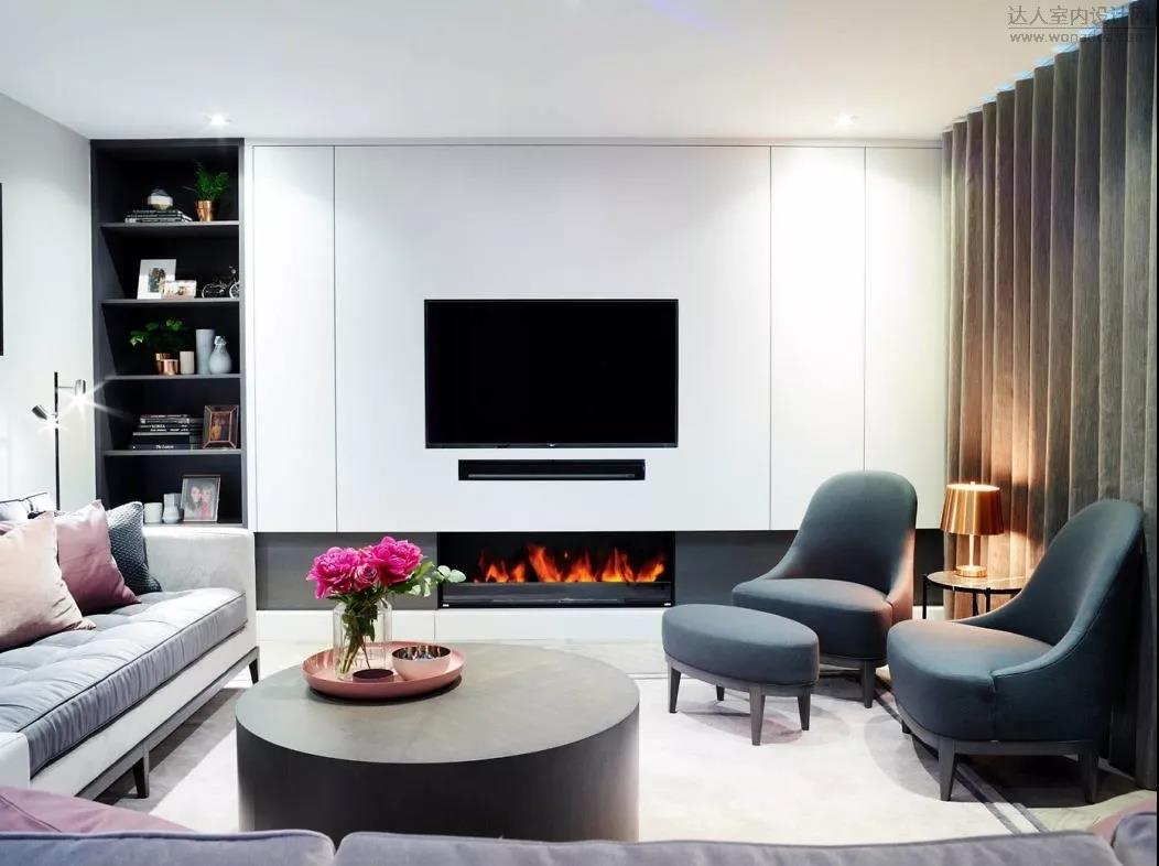 与传统意义的电视墙有较大区别,只是为了空间的延续,设计了电视墙,以往的电视墙讲究造型,好看,而现在,电视墙更简洁,低调,侧重实用与收纳。