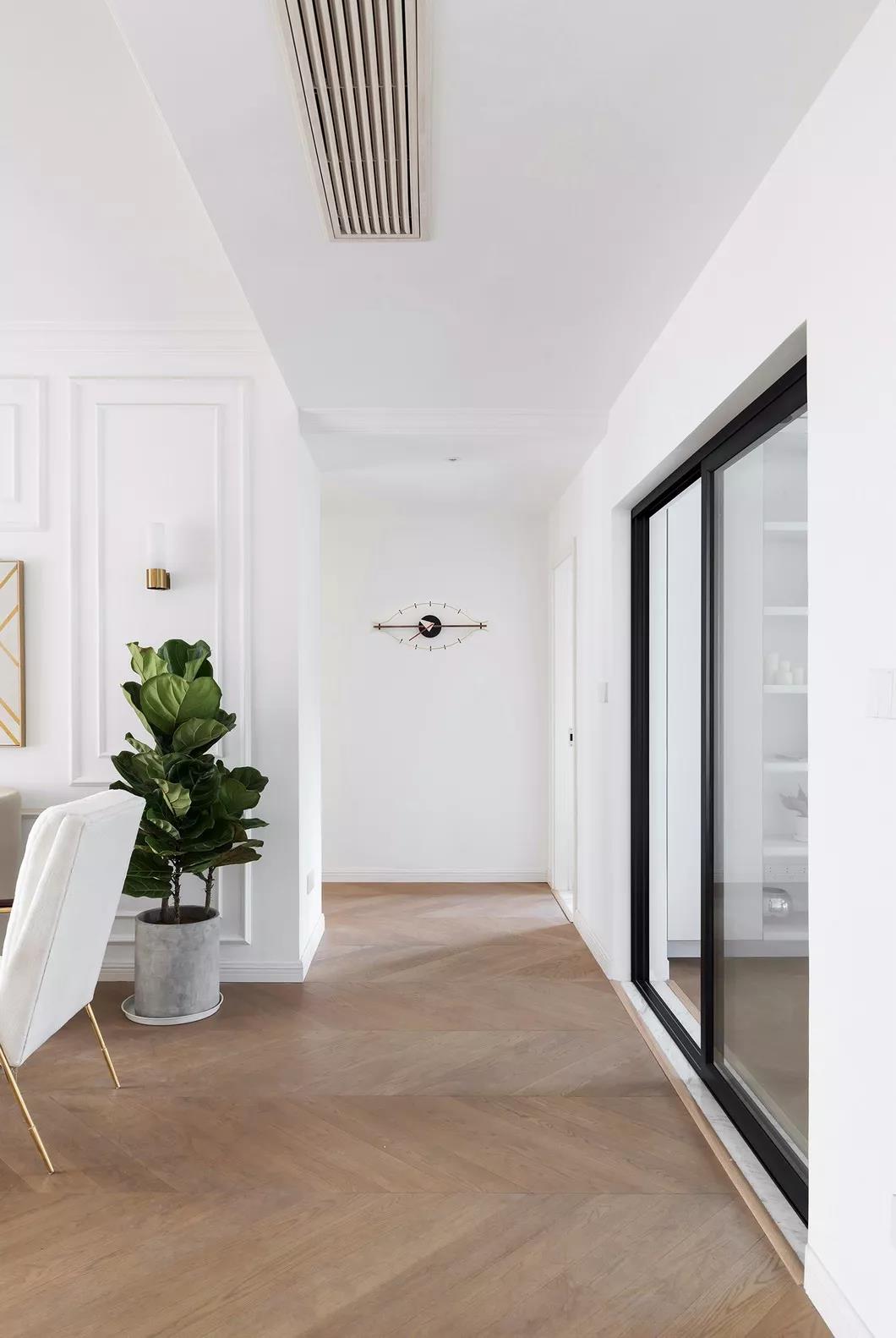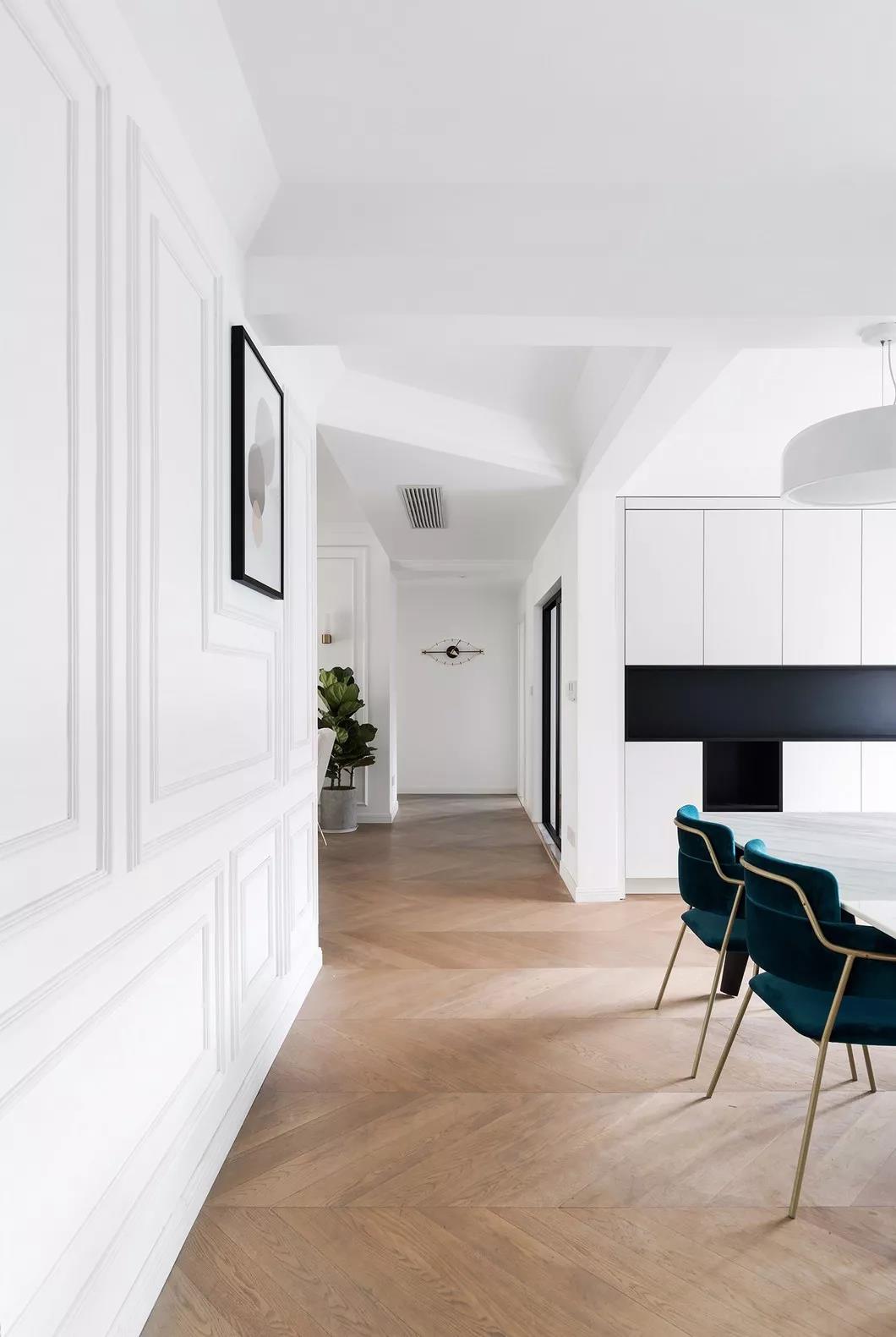 墙面白漆为底,线条为辅,即使是墙上的挂糊,也是以线条为装饰,没有使用过多的颜色与造型,让空间回归最初形态,整个空间被大量的白色所主宰