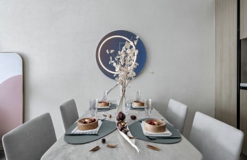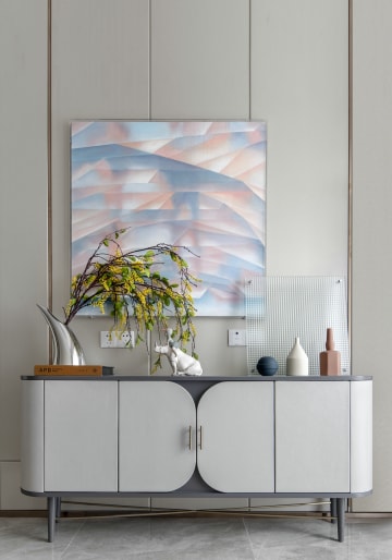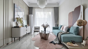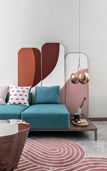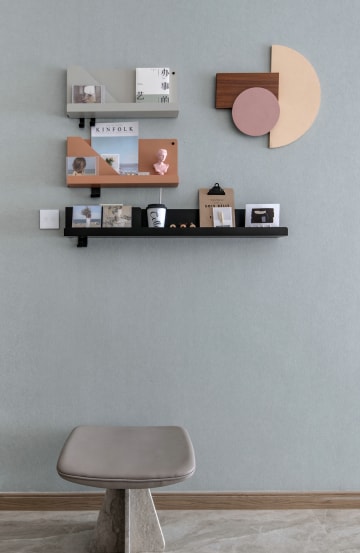 设计师在这套85㎡的小户型里展现了对色彩的巧妙把控,通过降低互补色的饱和度营造俏皮的复古朦胧感,无处不在铺陈的精致细节与之共筑怀旧又摩登的融洽氛围。