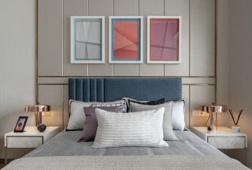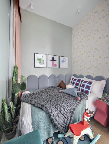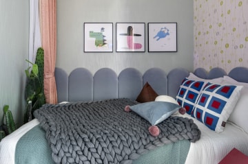 卧室在平面色块和立面视觉的完美配合下,迸发出复古的趣味感。