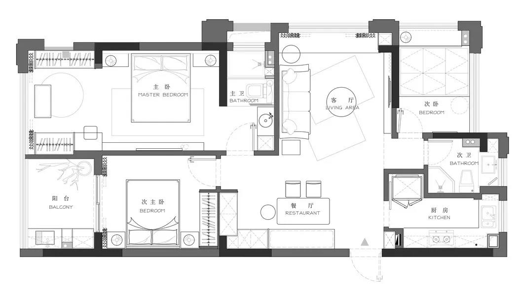 小户型的设计重点在于如何增加储藏收纳空间,卡座是设计师和业主商讨推敲多次后的决定,为了能更好的利用每一寸收纳空间。