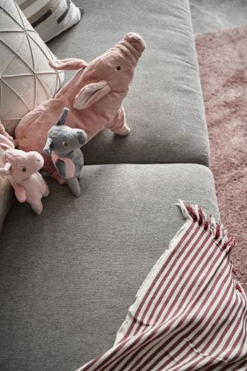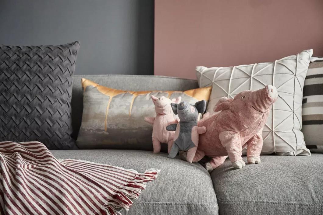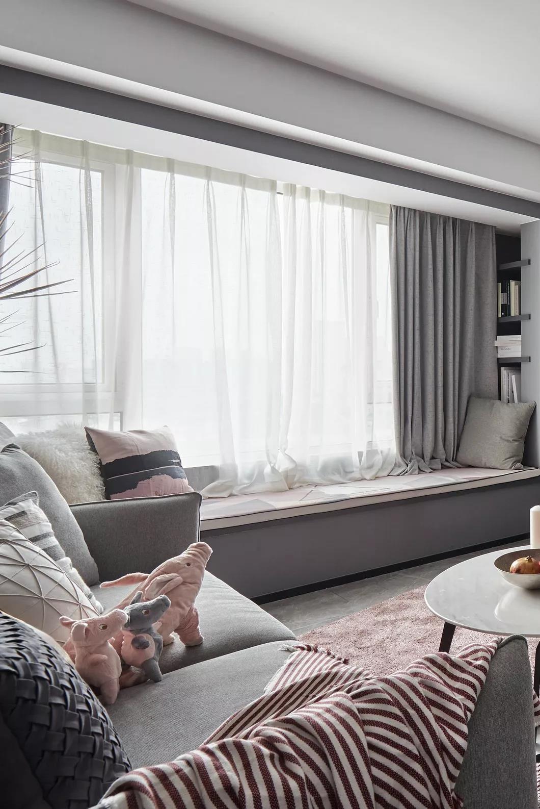主人的粉色小猪布偶也是亮点,使整个空间多了几许童趣,色彩和谐生动。