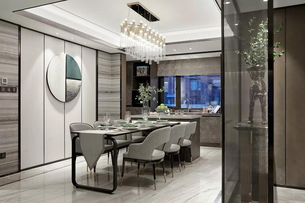 以实用美学视角借助隔板,划分客厅、餐厅及书房。在灰调的基础上点缀以简约装饰,使充满现代感的优雅流淌于餐厅。