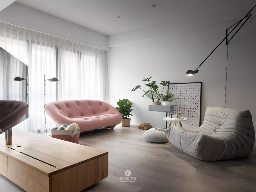 简单的小沙发,包裹感很强,想象一下,周末窝在里面,有没有一种“偏安一隅”的踏实感?这就是设计师想传达给人们的理念,简单又安稳,这才是家!