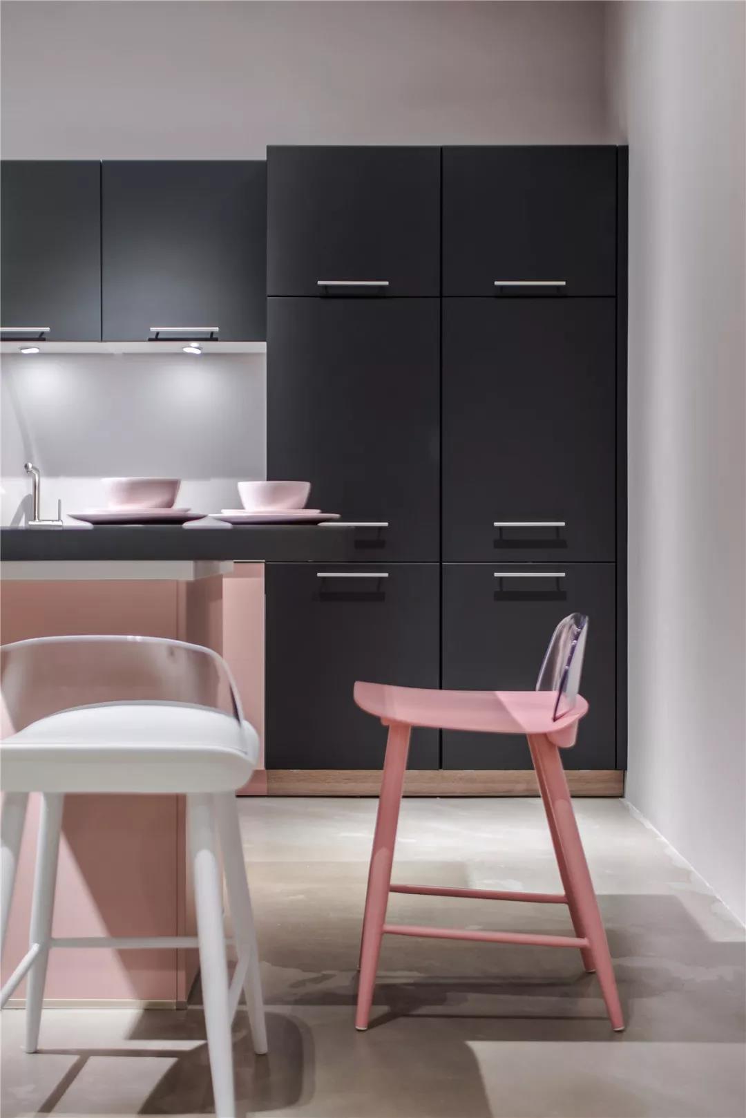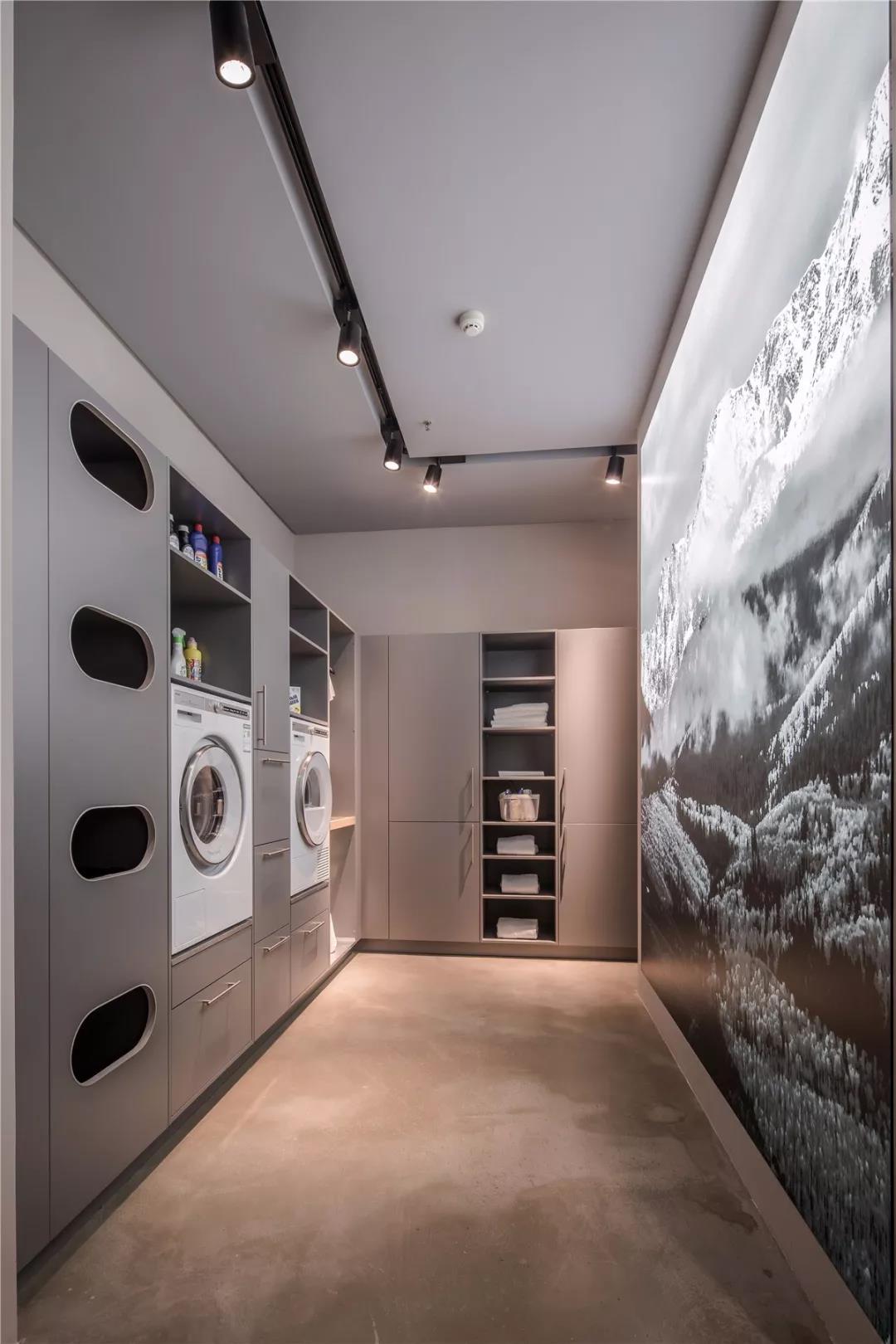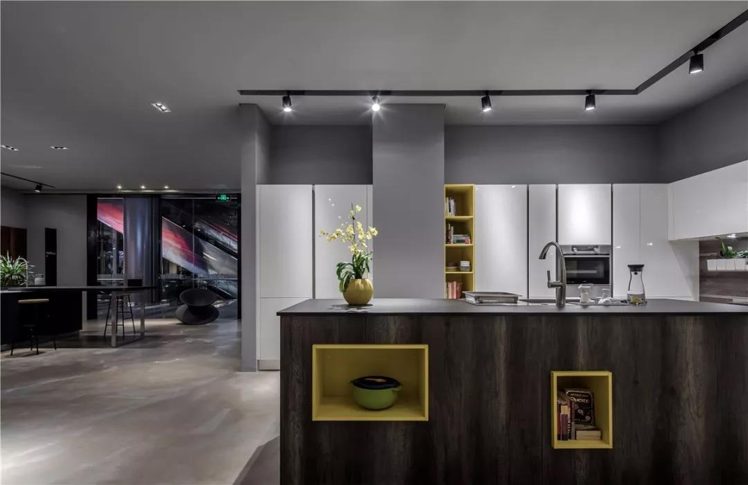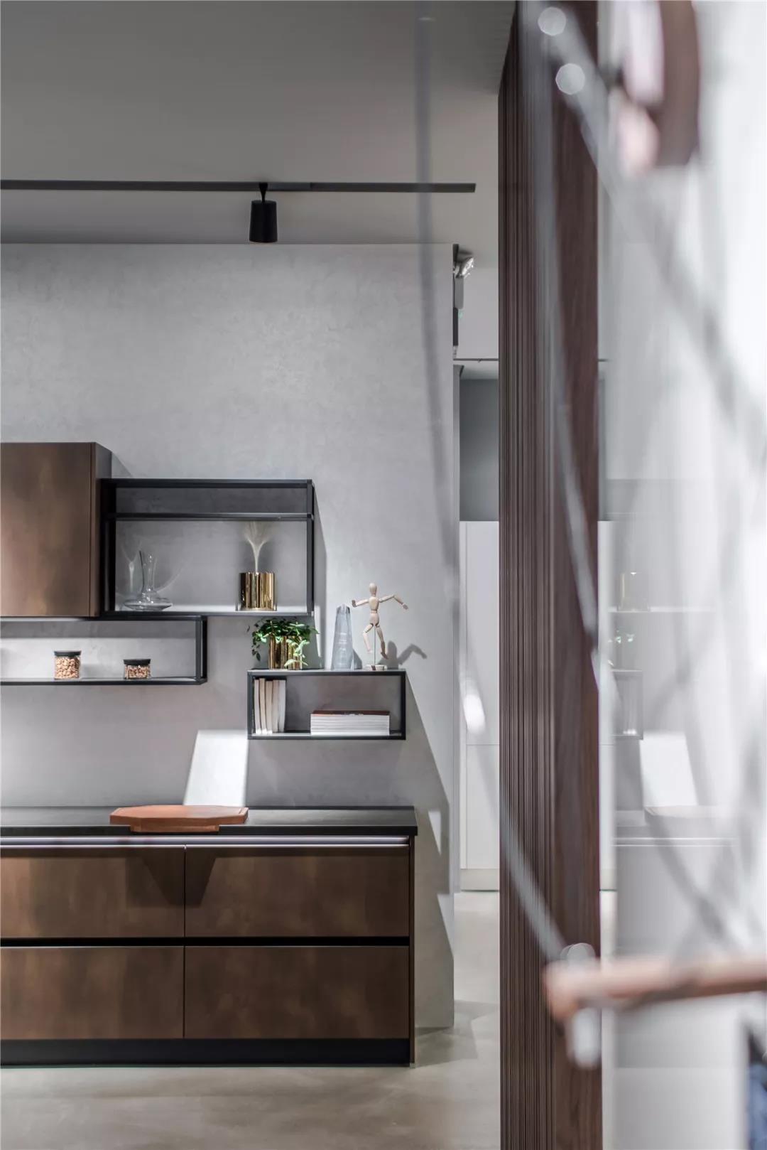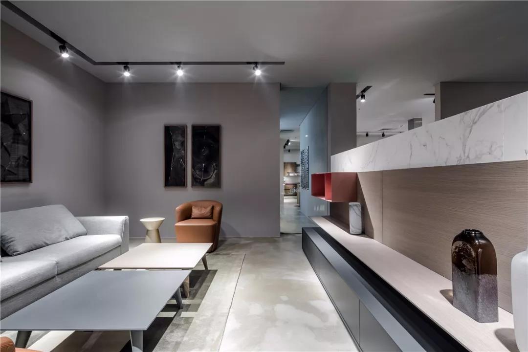灰,介于黑白,它兼具黑白的优点,稳重,含蓄,却更能呈现艺术意蕴,更具包容性,可与任何色彩搭配。设计师亦有意借”灰“这个中性色彩消弭过道空间,使室内更显宽阔;借“灰”的包容性去呈现更多色彩组合的魅力,使空间更具层次感。