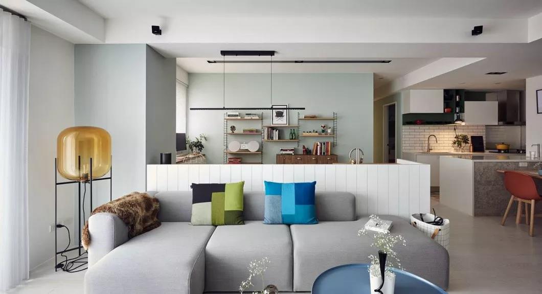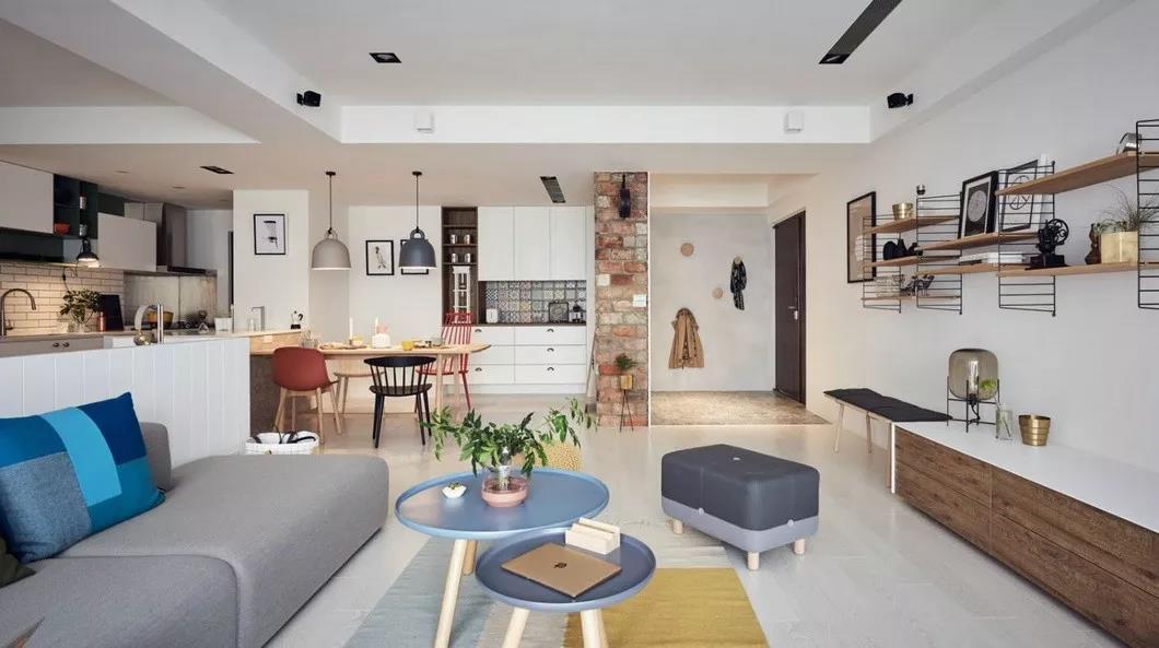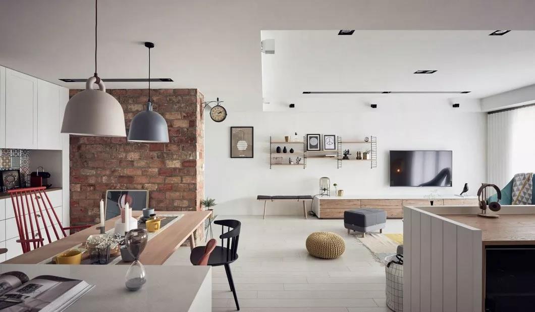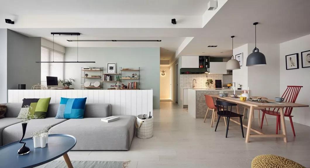 纯粹,清爽,纯白色系总是有一种难以言喻的迷人魅力,45坪单层住宅,利用开放式领域涵括客厅,书房,餐厨,串联日常起居的动态样貌,完美体现北欧人的自在,舒适的生活态度。