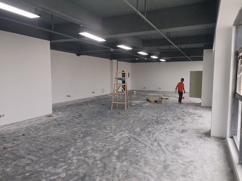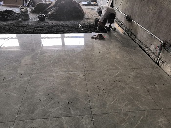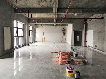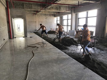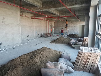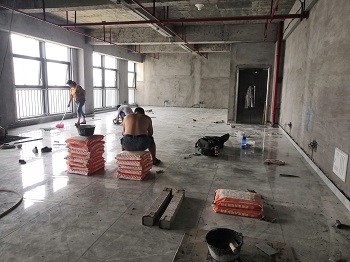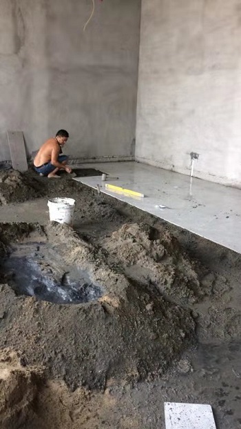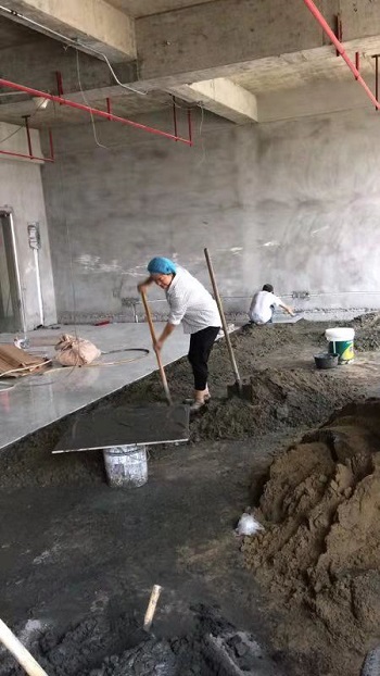 2019年9月29日——施工现场(进沙、水泥、瓷砖,踢脚线已打))