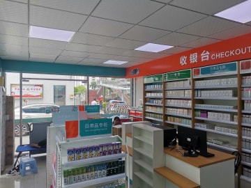 照明设计时必须配合药店的特性,在店头、天花板、药店货架等位置