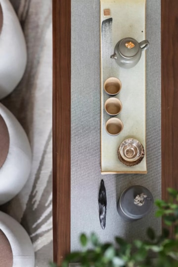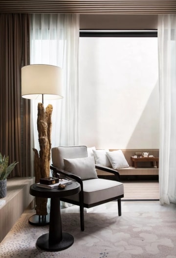采光庭院引入自然的光照与灵气,当阳光倾泻而下,掠过竹编落地灯,落在粗粝木艺地板上,时间好像暂时印在了光影之上,与三两好友品茶畅聊,时光缓缓流淌,诗意在这一隅悄然生长。