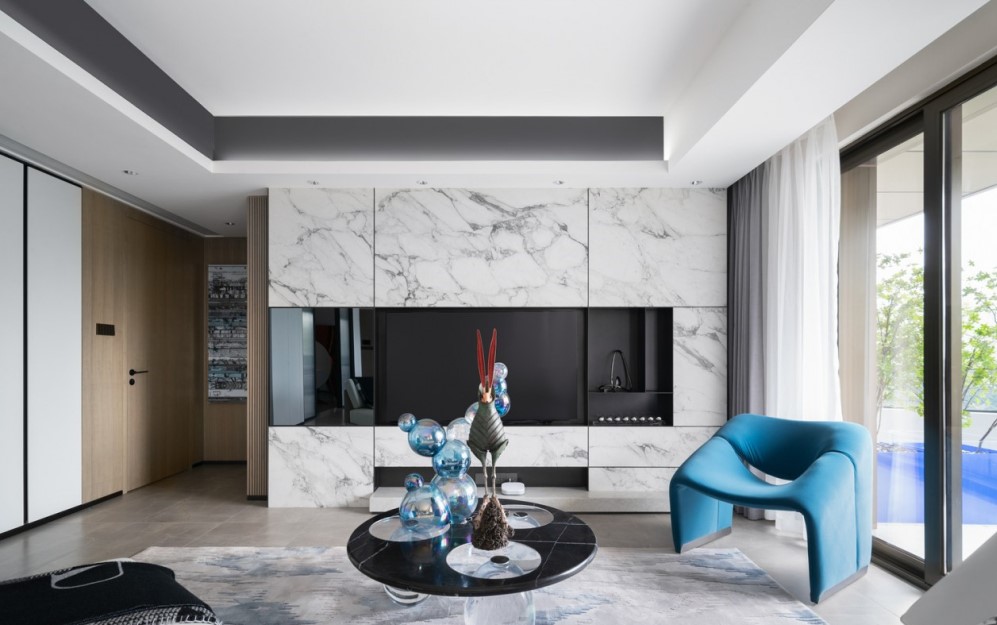立面的装饰语言则简练到极致,注重使用材质与材质之间的搭配、肌理感的变化、色彩间的碰撞,塑造出空间的时尚高贵与艺术气质。