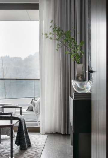 随着时光的转移,光线与门窗呼应出半面江景的惬意,虚实转换间安然自若,细品韶华。