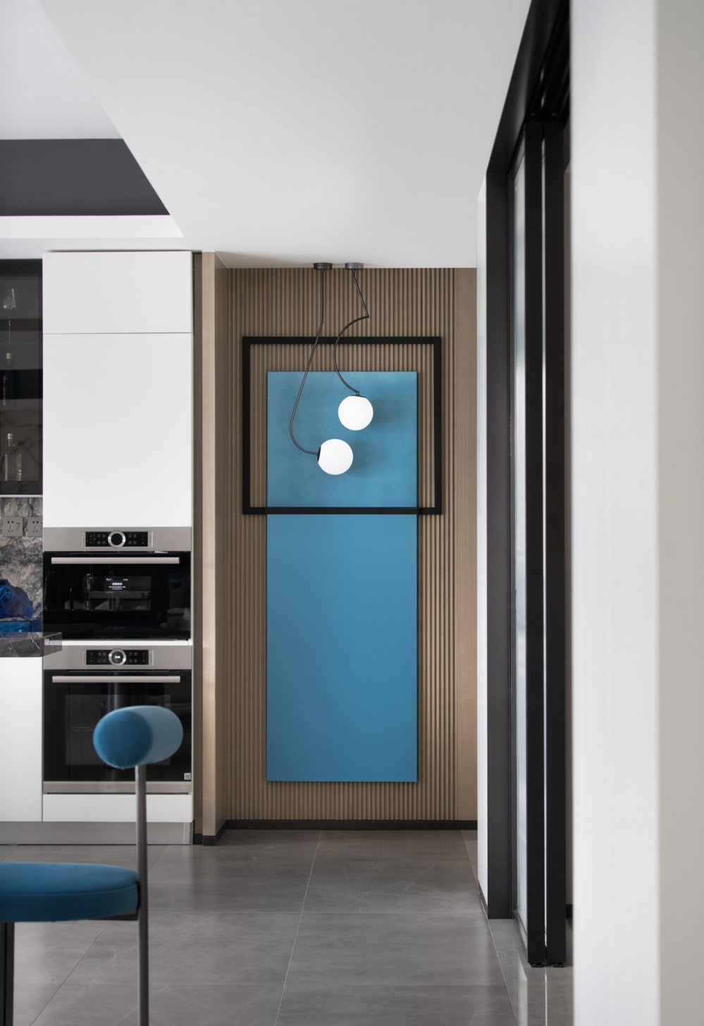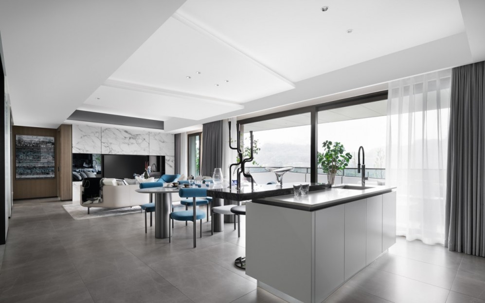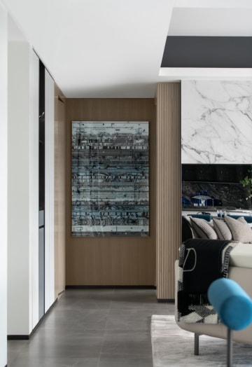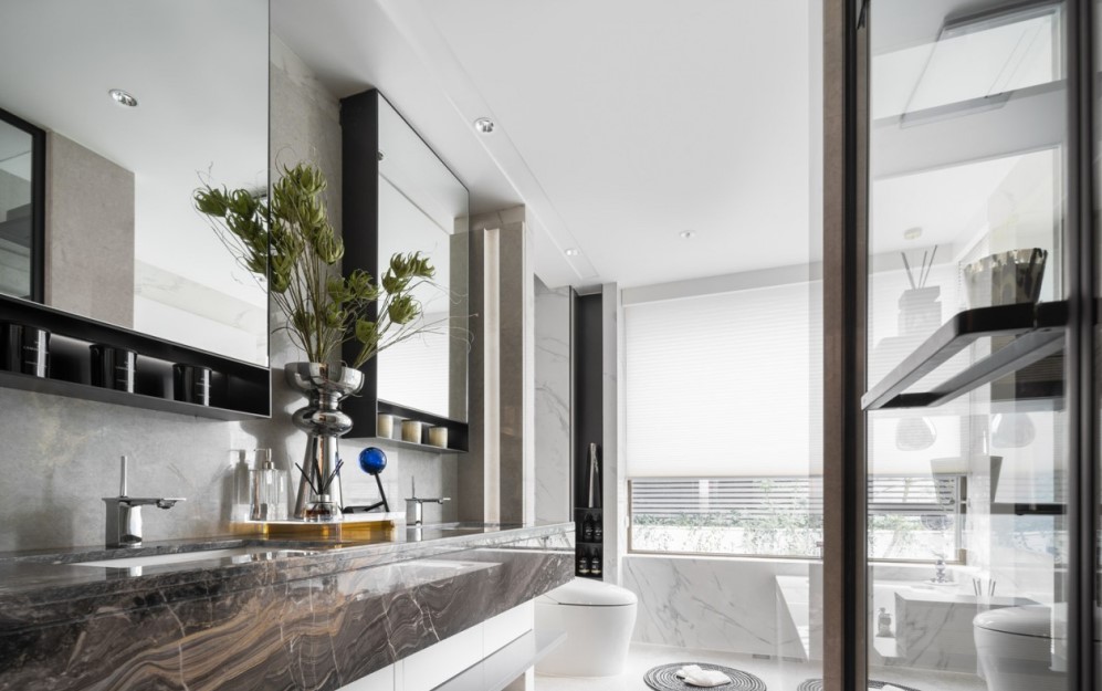 黑白色调与对称线条搭配,灰色系大理石优美的纹路将自然万象揽入空间,塑造简约、艺术的视觉感受。