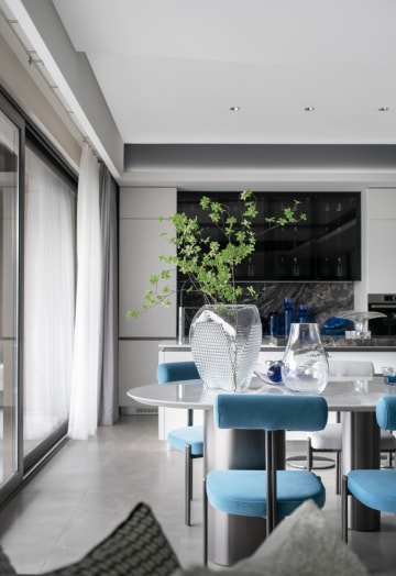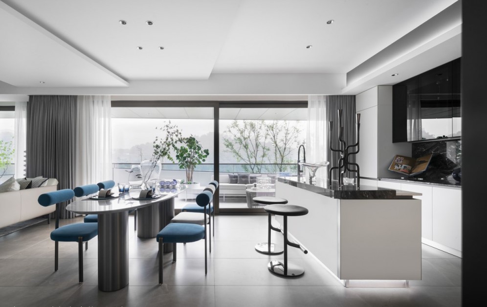 客厅与餐厅,是家庭时光最美好的陪伴。大横厅设计开阔敞朗,客厅与西厨融为一体不拘一格,满足需要的同时增添额外社交空间,景观阳台盛境相邀,一览无遗。