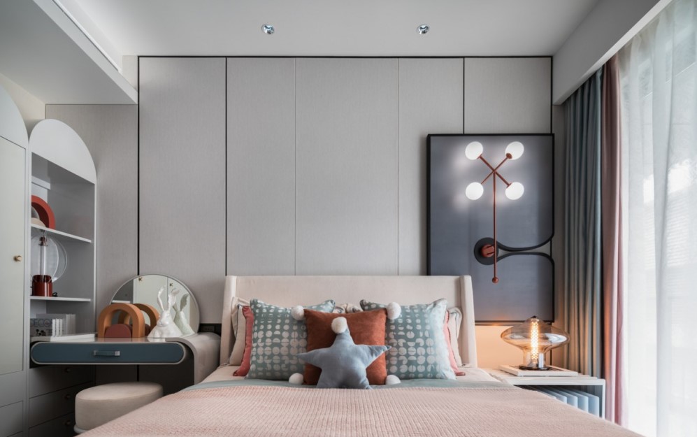 环保木质地板、木质衣柜与白色雾面烤漆融合,落地窗设计增强与室外互动,揽清风入怀,享品质舒居。