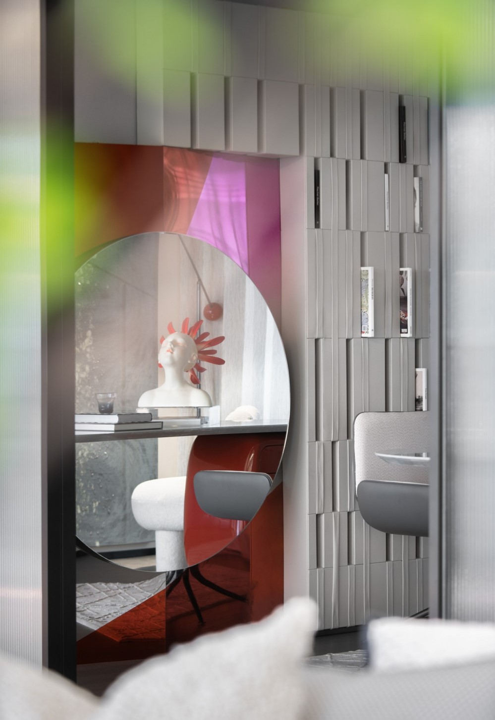 书房的设计巧思融于全敞推拉门中,通透材质保证空间透气同时让自然光源透进角落。