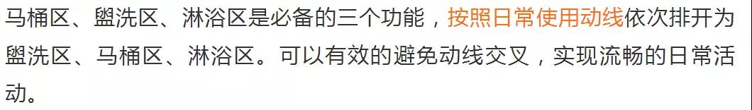 不同卫生间空间对应的布局方式不同,长方形空间按照日常动线和使用频率排列3大功能区,避免动线交叉;
