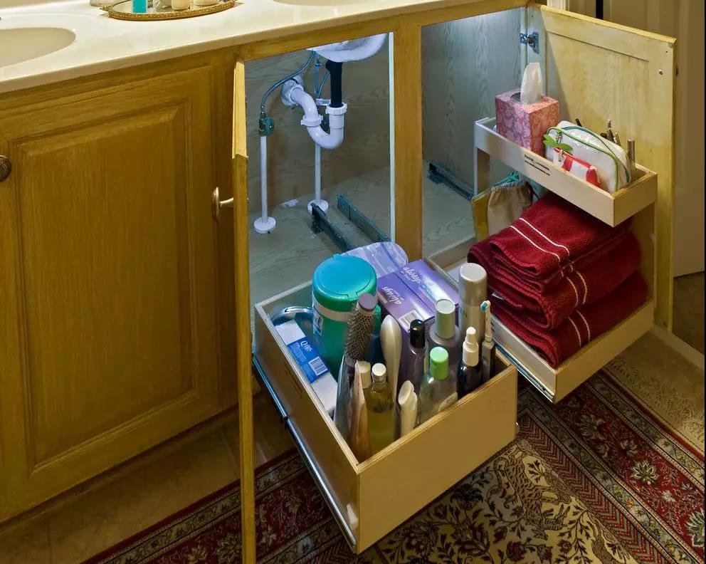 卫生间也用各种零碎的东西需要收着,你心想着卫浴洁具都是好不容易塞进去的,还有什么地方可以收东西,挤一挤就有了。