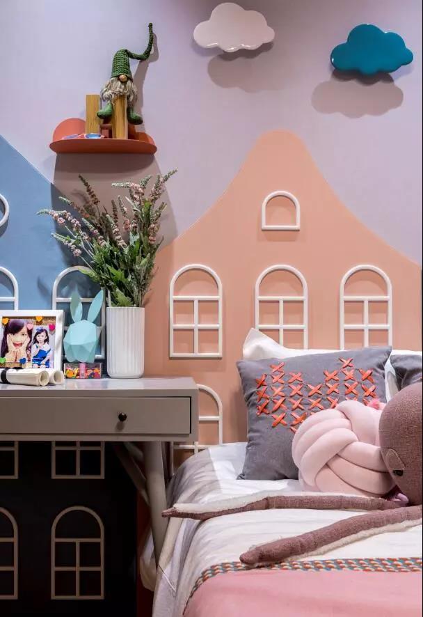 女孩房选用暖粉色作为整个基调,儿童房的设计采用了偏现代风格,以及色彩丰富的床体和床面,有助于孩子活泼天性的释放,并给她一个积极的生活环境。明亮淡雅的色彩让孩子们的心情也变得明朗。唯有阳光和美好的心情,是童年不可辜负的馈赠。
