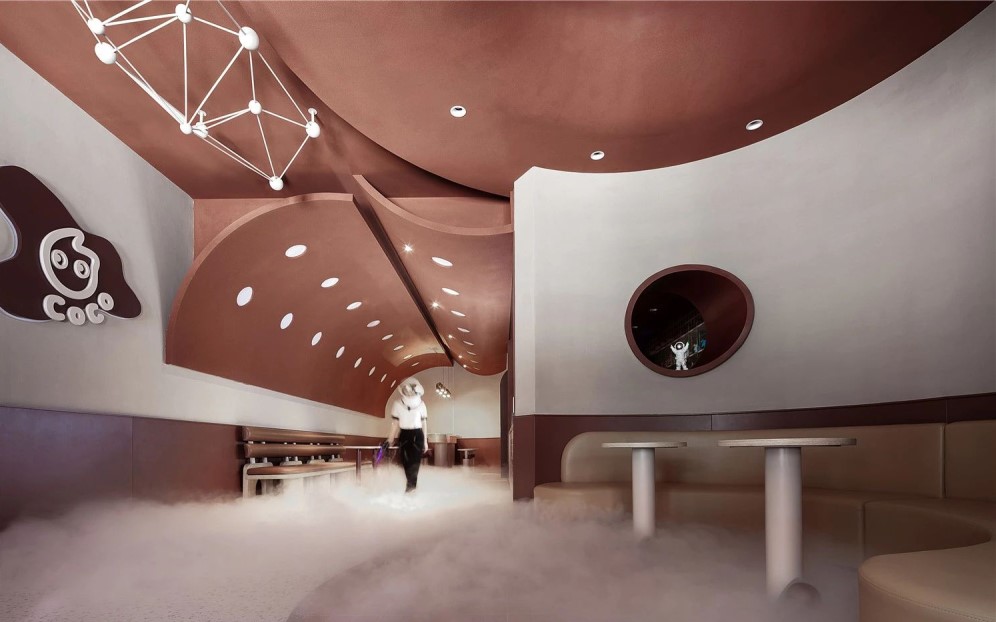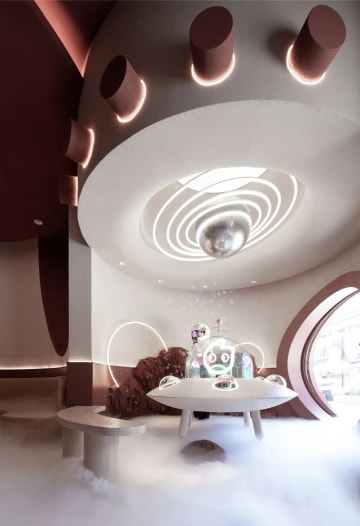 作为人们熟悉的品牌,这一次的CoCo却又带了一丝神秘的气息。一直想要追求新突破的设计师,这一次,从初进门的第一步,就为CoCo宇宙增添神秘之感。隔着曲面的玻璃窗,CoCo号飞船着陆于陨石林立的焦糖星球,似乎是在等待勇敢的探索者,随时整装待发。