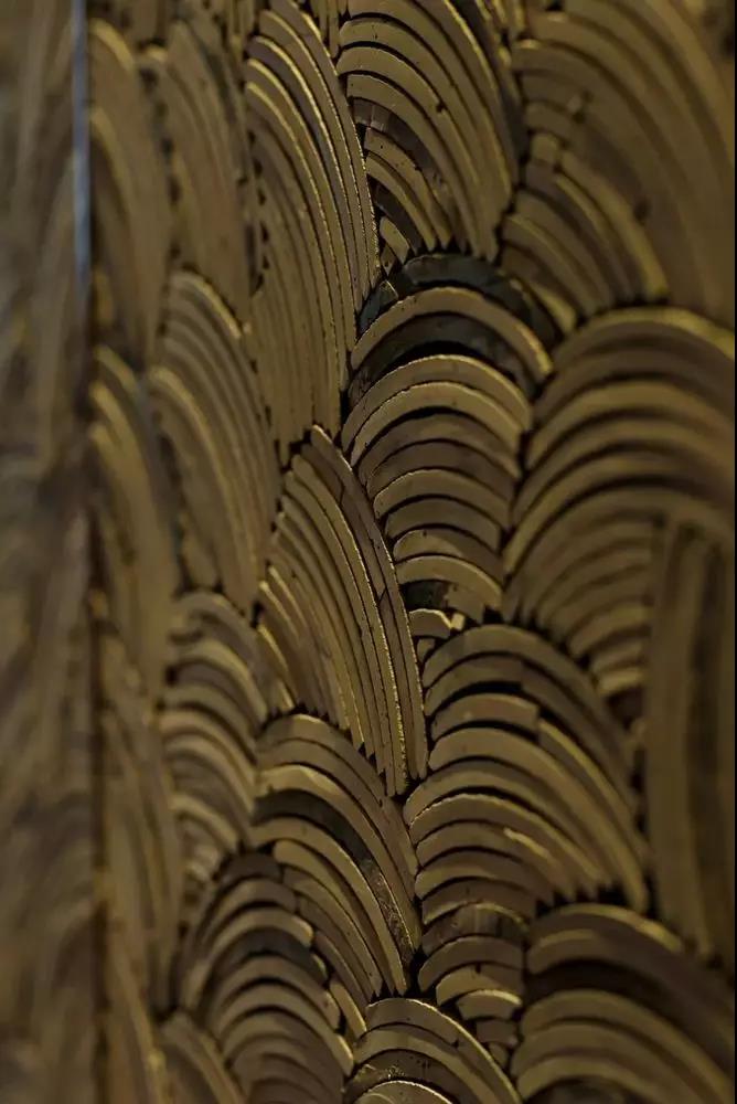 SLH 考虑到顾客在到达和进入餐厅时的第一观感享受,设计师在门口设置了绿意盎然的热带植物印花旋转屏风,热带植物印花与背面的木饰面原色,以看似随意却是精心设计的角度呈现,进入餐厅的一瞬间就能给到就餐者极高的热带视觉享受。