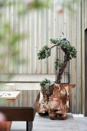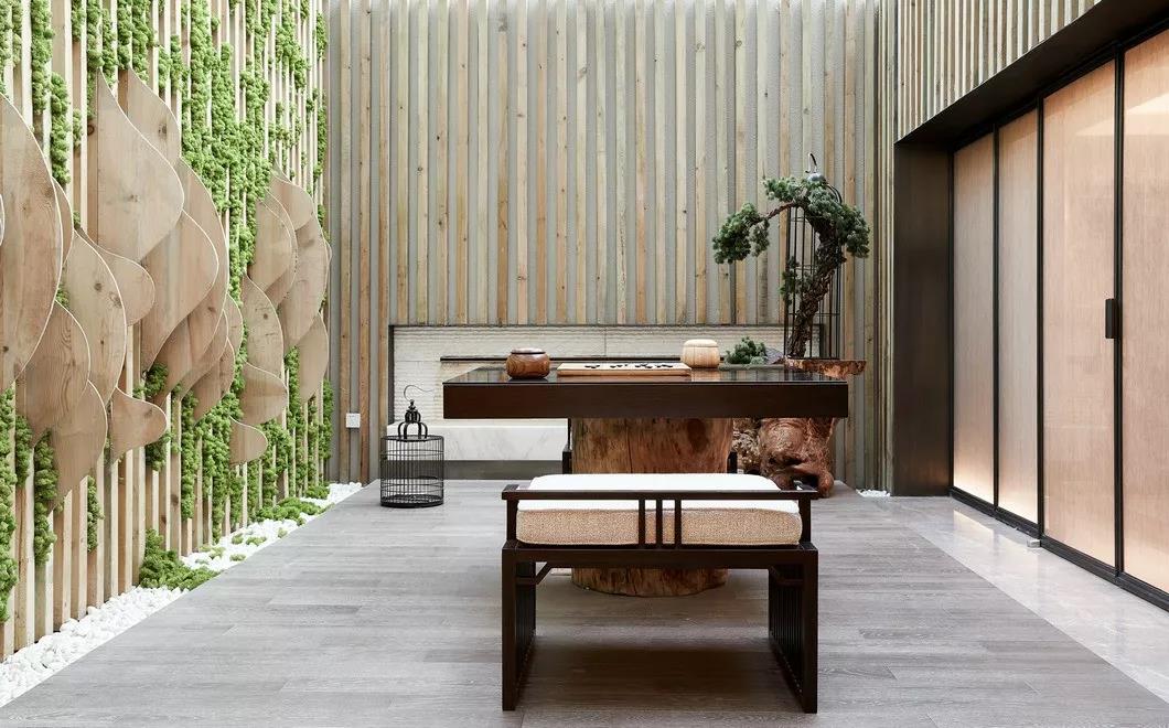 休闲区依然延续东方精神的美感,植入以中式元素。在此空间,有种素履以往,荏苒时光流水声的古韵。远离世外纷扰,那理不清道不明的凡尘杂事纷纷尘埃落定。温一盏酿酒,摘一束桂花。于幽静处,倾心布茶,对饮天高云淡。