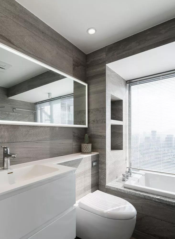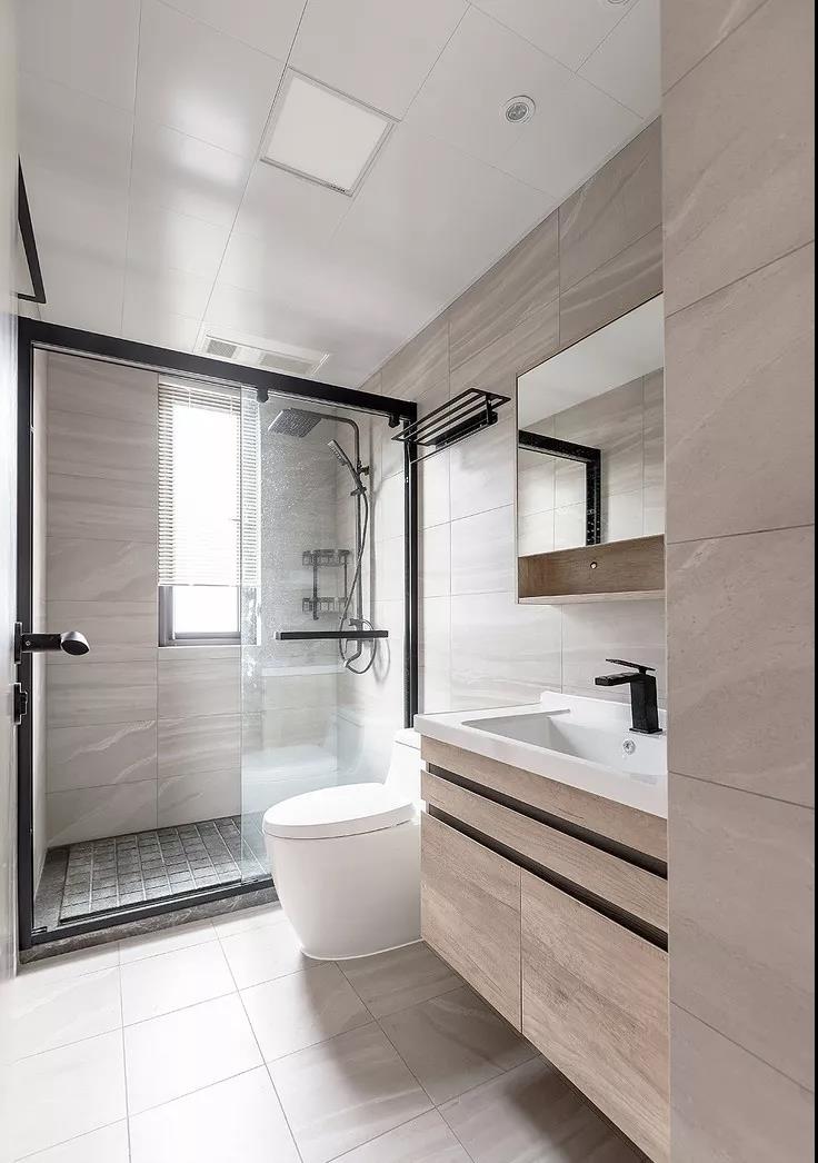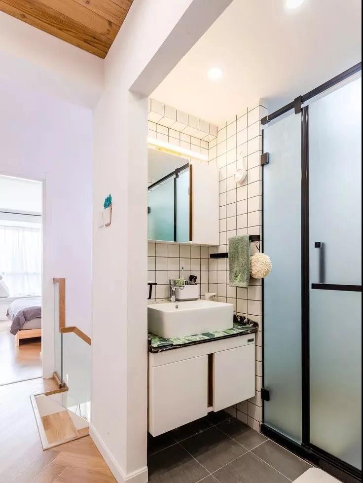 所以如果你家卫生间不是特别大,就不要想着把什么都塞进去了,浴缸拿掉,洗衣机拎出来,台盆独立出卫生间之外,你会发现小小的卫生间用起来还挺宽敞。