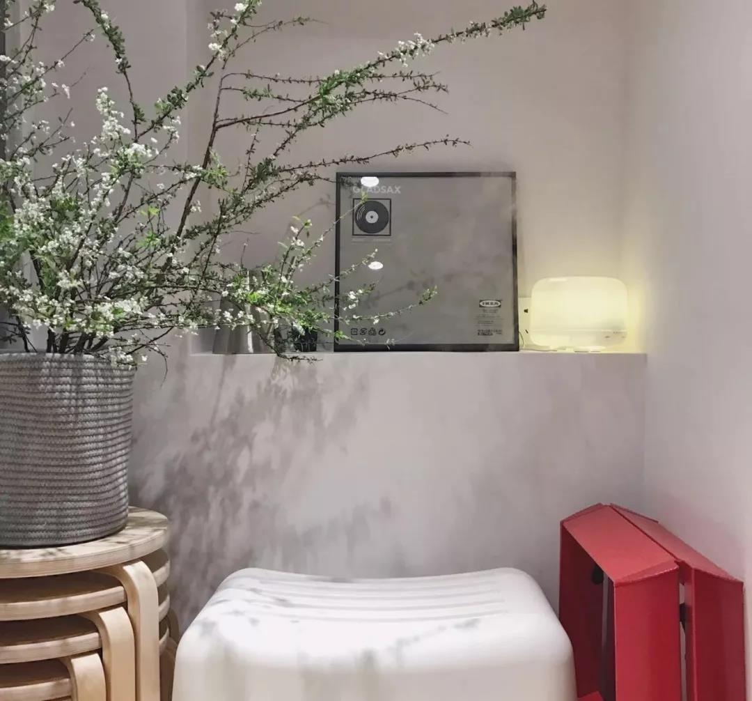 ▲ 墙面凹洞是原本房子就有的,增加层板后,可以放些日常用品