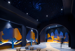 星空坠落,潜入海底,钻石般的繁星闪烁着光芒,仿佛航行于银色的长河中。沉浸式星空剧场,可满足孩子们对于戏剧、表演等特定场景体验的需求。