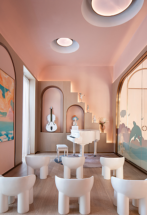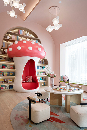 设计师以柔美趣意的笔触勾勒出一个奇思妙想的童趣世界,不同场景分区下功能丰富,寓教于乐,赋予孩童们超越嬉乐的成长意义。