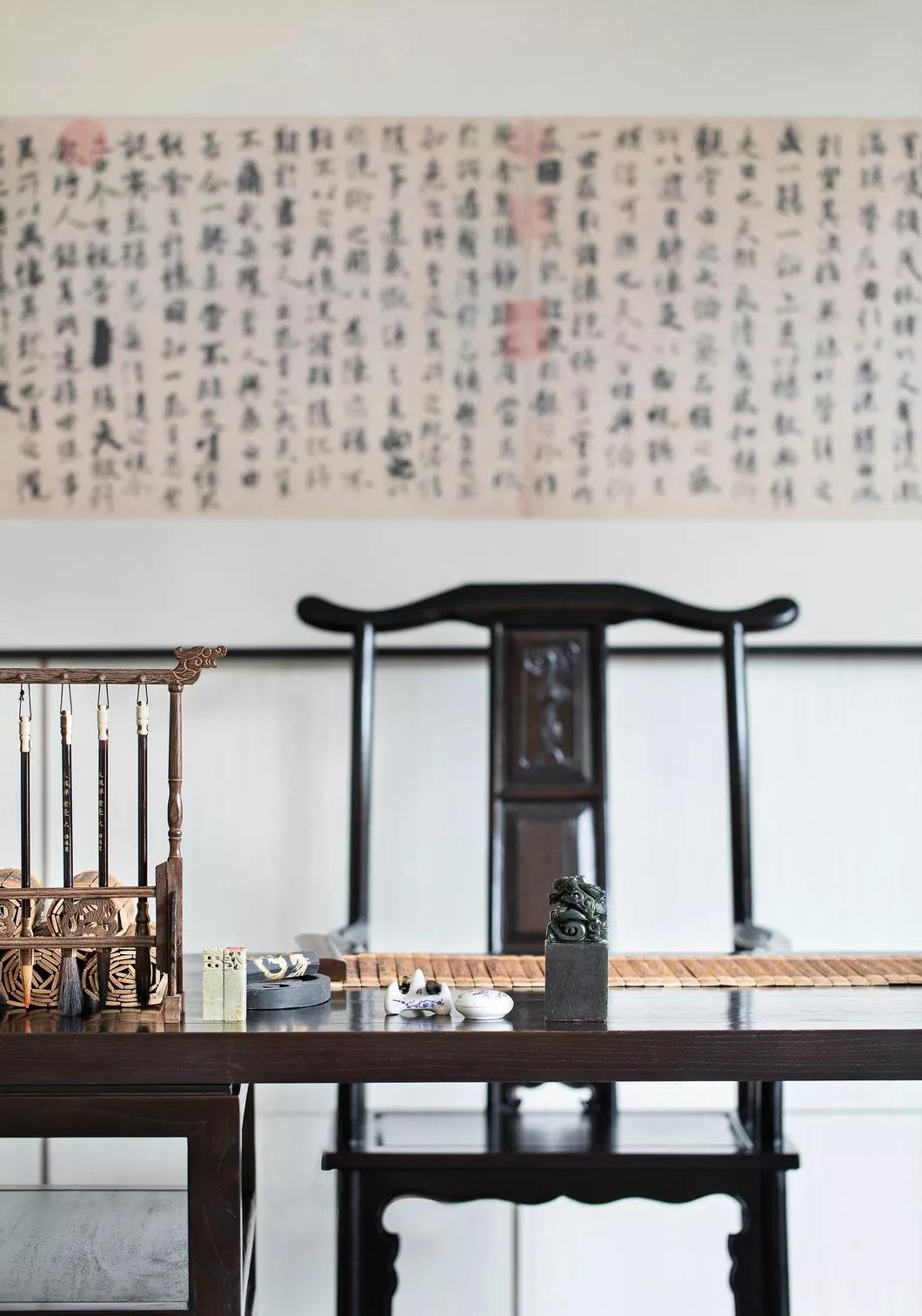 进入样板房前,有一处同样古雅的休息区静候着来宾,简式玫瑰椅、绣枕书画、意趣小品共同抒写着空间落落大方的东方美学,闲雅的意韵舒缓着宾客等候的枯燥心情。